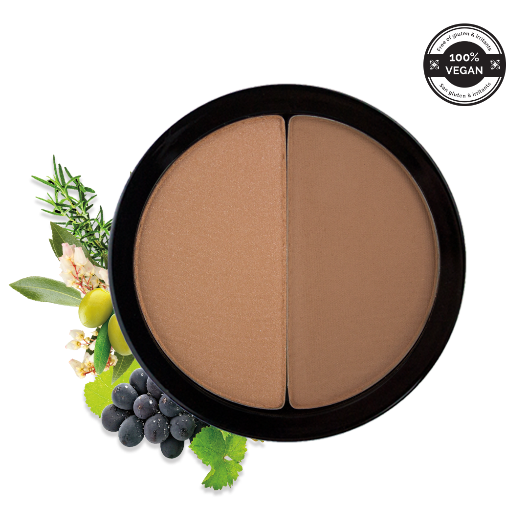 Valoa heijastava aurinkopuuteri ainutlaatuisella silkkimäisellä koostumuksella kasvoille ja vartalolle. Duo-pakkauksessa 2 eri värisävyä, joita voi käyttää sekä poskipunana että aurinkopuuterina. Luonnollinen näköistä, tervettä päivetystä kasvoille! Luonnollinen mineraalikoostumus ravitsee ihoa eikä ärsytä ihoa tai tuki huokosia.